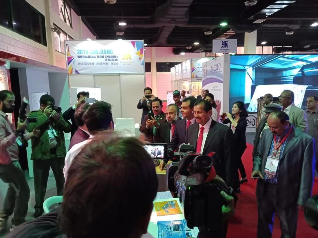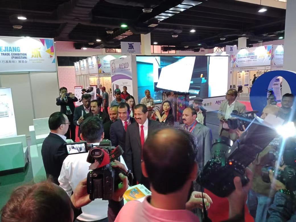 巴基斯坦卡拉奇當(dāng)?shù)毓賳T訪問海寧紡機(jī)展臺,祝賀海寧紡機(jī)參展成功!