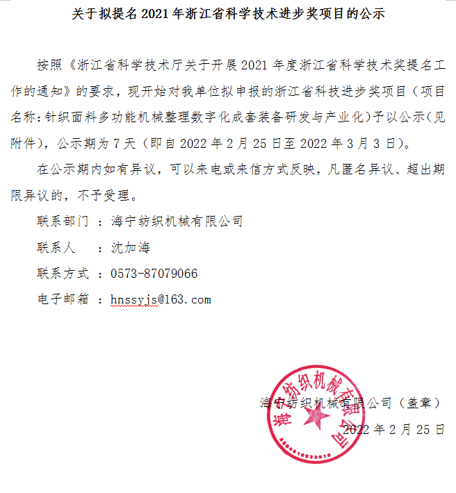 關(guān)于擬提名2021年浙江省科學(xué)技術(shù)進(jìn)步獎(jiǎng)項(xiàng)目的公示