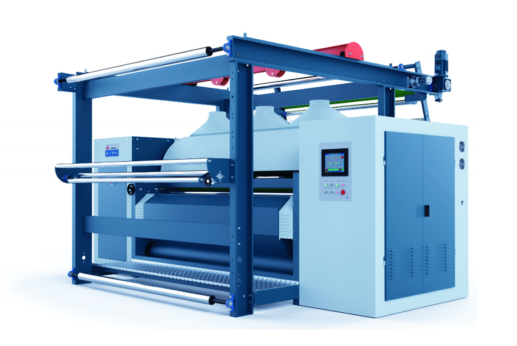 2、PLC+觸摸屏控制,溫控模塊控溫,控制溫度更精確。送布電機(jī)和出布電機(jī)采用變頻器調(diào)速,各段張力分別可調(diào),布速可在10-40米/分內(nèi)任意選擇,數(shù)值由觸摸屏上直接顯示,各組導(dǎo)輥間張力可調(diào)。